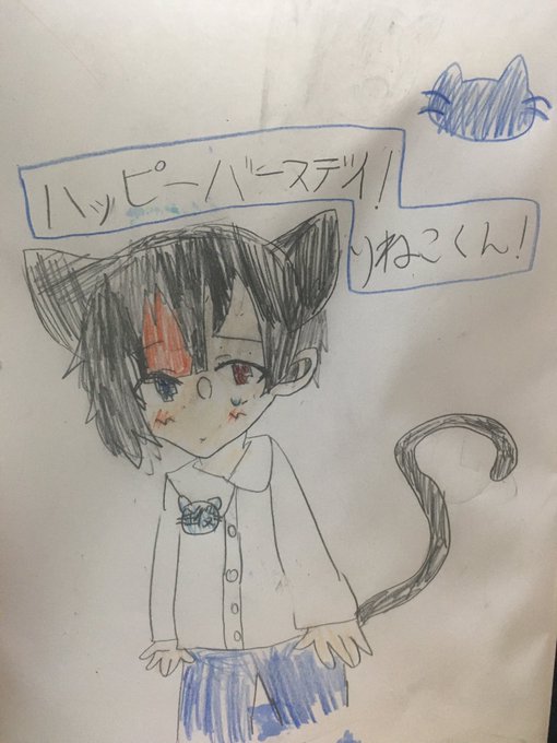 #りいぬぎゃらりー #りねこくん 今日、りねこくんが誕生日だから 娘がりねこくんを描きたいと言って いました。