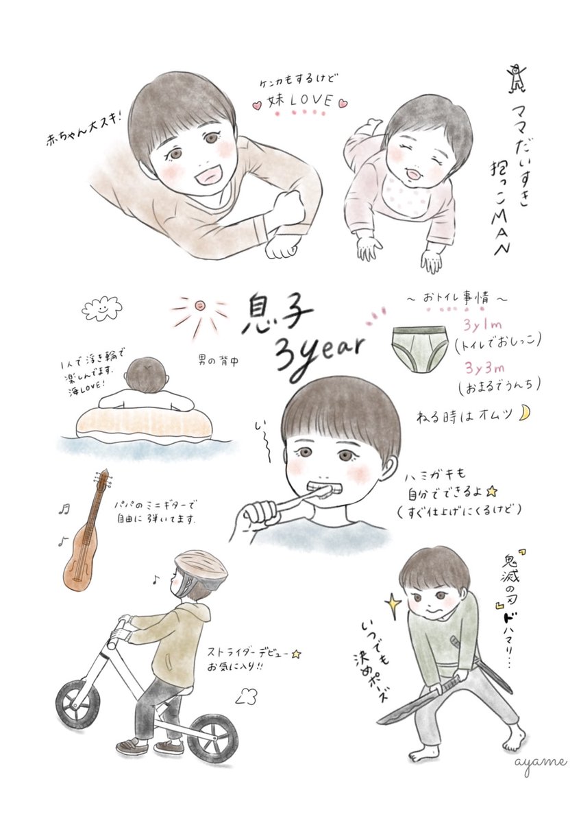 0 11 5月に息子が4歳になったので3歳の記録 ✎(遅くなってしまった…) たった1年前なのにすごく幼く見えるし、その分成長した事を実感してうるっとくる🥲 #子育て #ママイラストレーター #育児漫画 #兄妹のいる生活 22/10/18 10:04