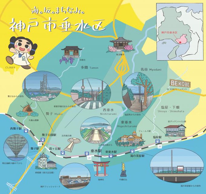 【お知らせ🏖️】 神戸市垂水区ホームページのイラストマップを描かせていただきました。作者コメントまで載せていただいて感無量です。ありがとうございます。 city.kobe.lg.jp/j39681/kuyakus…
