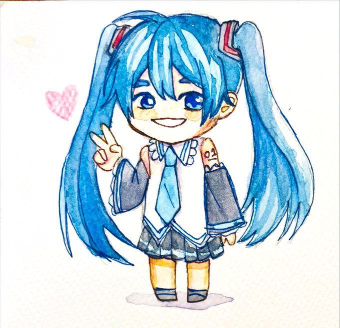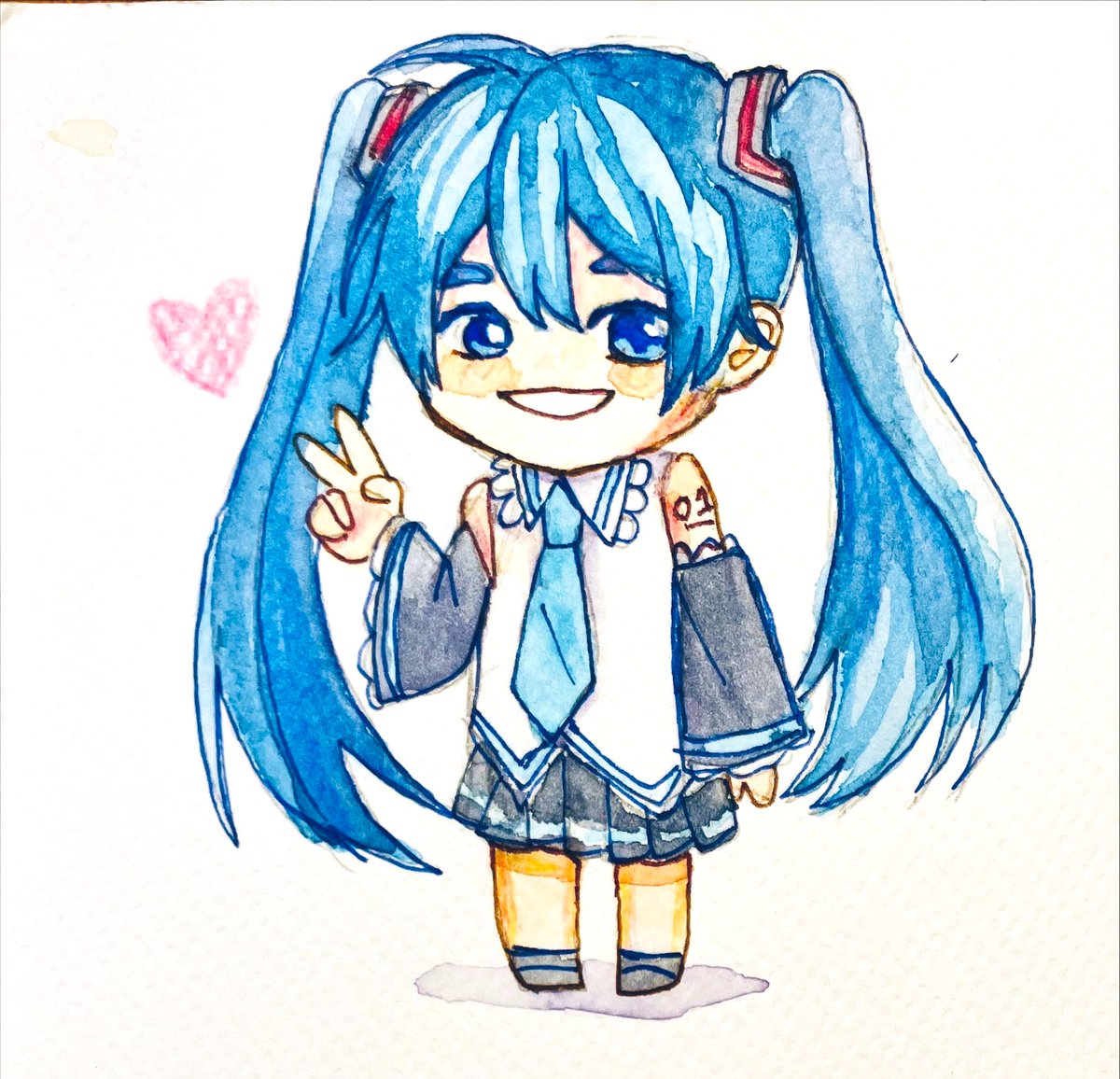 新しく買った水彩紙に初音ミクちゃん描いた! #illustration #イラスト #初音ミク