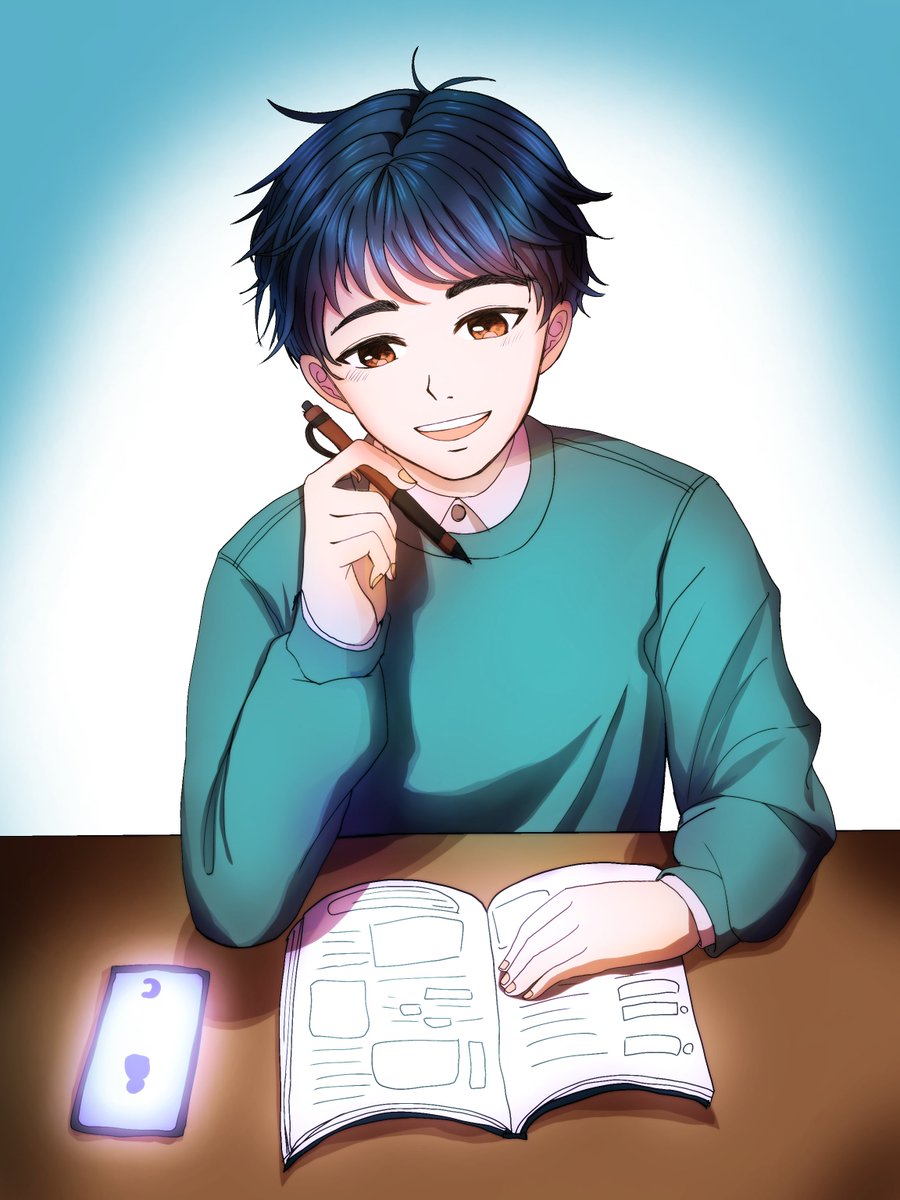 勉強通話中📞✍🏻📖´- #絵描きさんと繋がりたい #創作 #イラスト #illustration