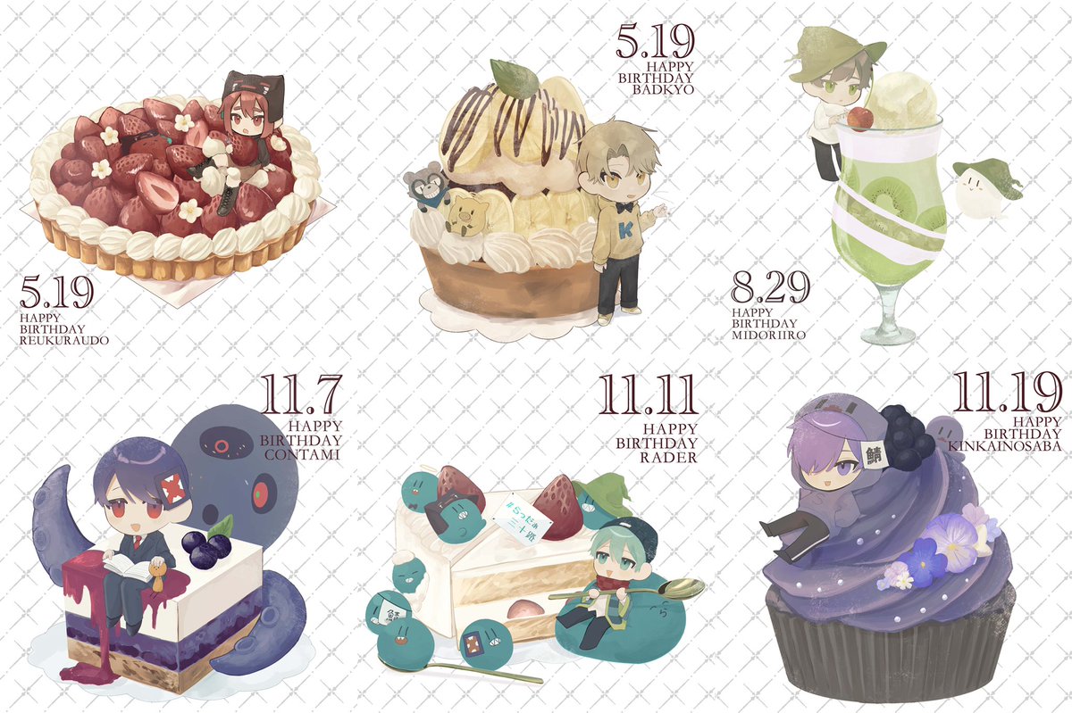 今年描いたウンエの誕生日イラストを集めてみました〜😙😙 今年は『ケーキ×ウンエ』のシリーズもので描いてみようと思って描き始めました☝️好きな物×好きな物は描いてて楽しい!!!! 2枚目はこんなイメージで描いたんだよって言う文です……👀