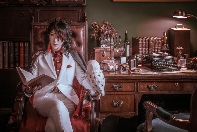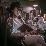 書與貓頭鷹 瞬間有種會什麼魔法的感覺😂 *** Vox Akuma | @ayan_cosplay 📸 | @Patricia__579 #Akurylic #VoxAkuma #voxcosplay