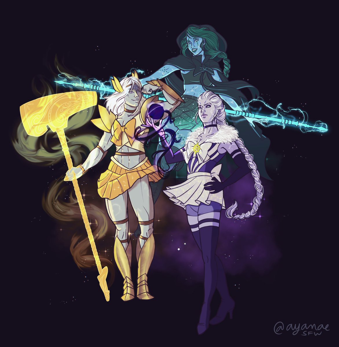 The time when Suraya dragged Ikora to a metal music festival 🤘🏽💘✌🏿 (Look at how much FUN Ikora's having!) ... A slightly different take on this year's #SolarEmbraceVol3 ✨ ... #Destiny2Art twitter.com/ayanaeSFW/stat…