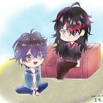 #ikenography #Akurylic #Ikeakuma 线下联动之daddy坐在沙发上低头听ike讲话❤️💙 抱歉,配色真的很死亡,直女穿搭真的很烂💔画不出他们万分之一的美丽呜呜呜