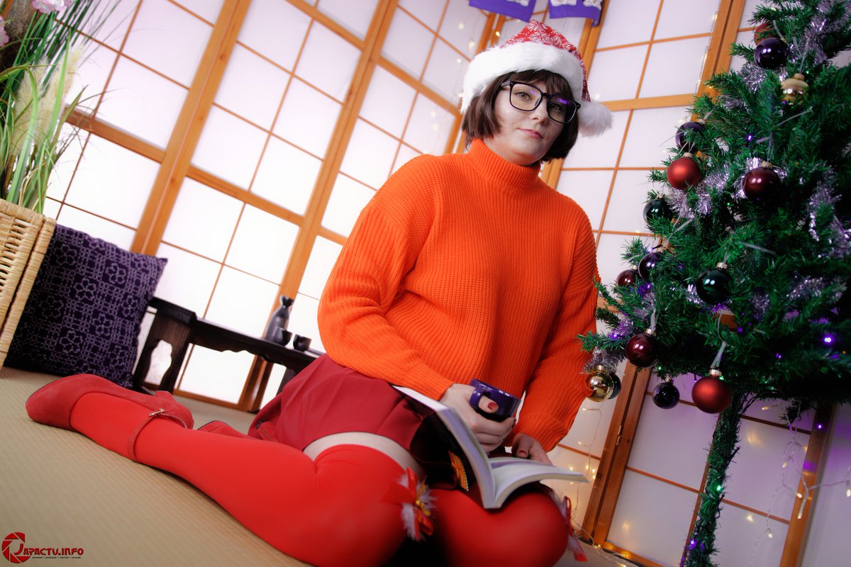 Petite photo rapido pour vous souhaitez de joyeuses fêtes ! Profitez des gens, de vos animaux ou de vos bouquins ✨️ @JapActu #ScoobyDoo #Velma #Cosplay