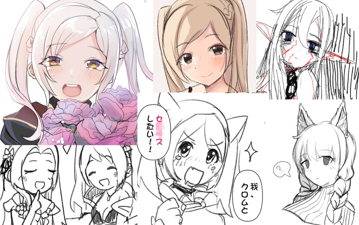 #今月描いた絵を晒そう メンタル不調の1ヶ月…… ラフ多い……😪😪😪 来月もよろしくお願いいたします。です!