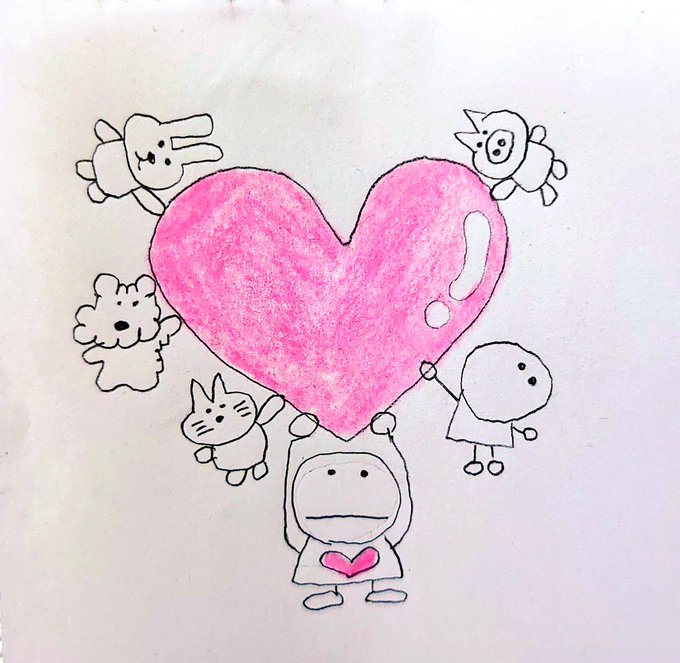 1 11 どんなよのなかに なっても、 しあわせさんの おおきなはーとから てをはなしたら だめだよ…… #イラスト #お絵描き #画家 #しあわせようせい 21/07/29 05:34