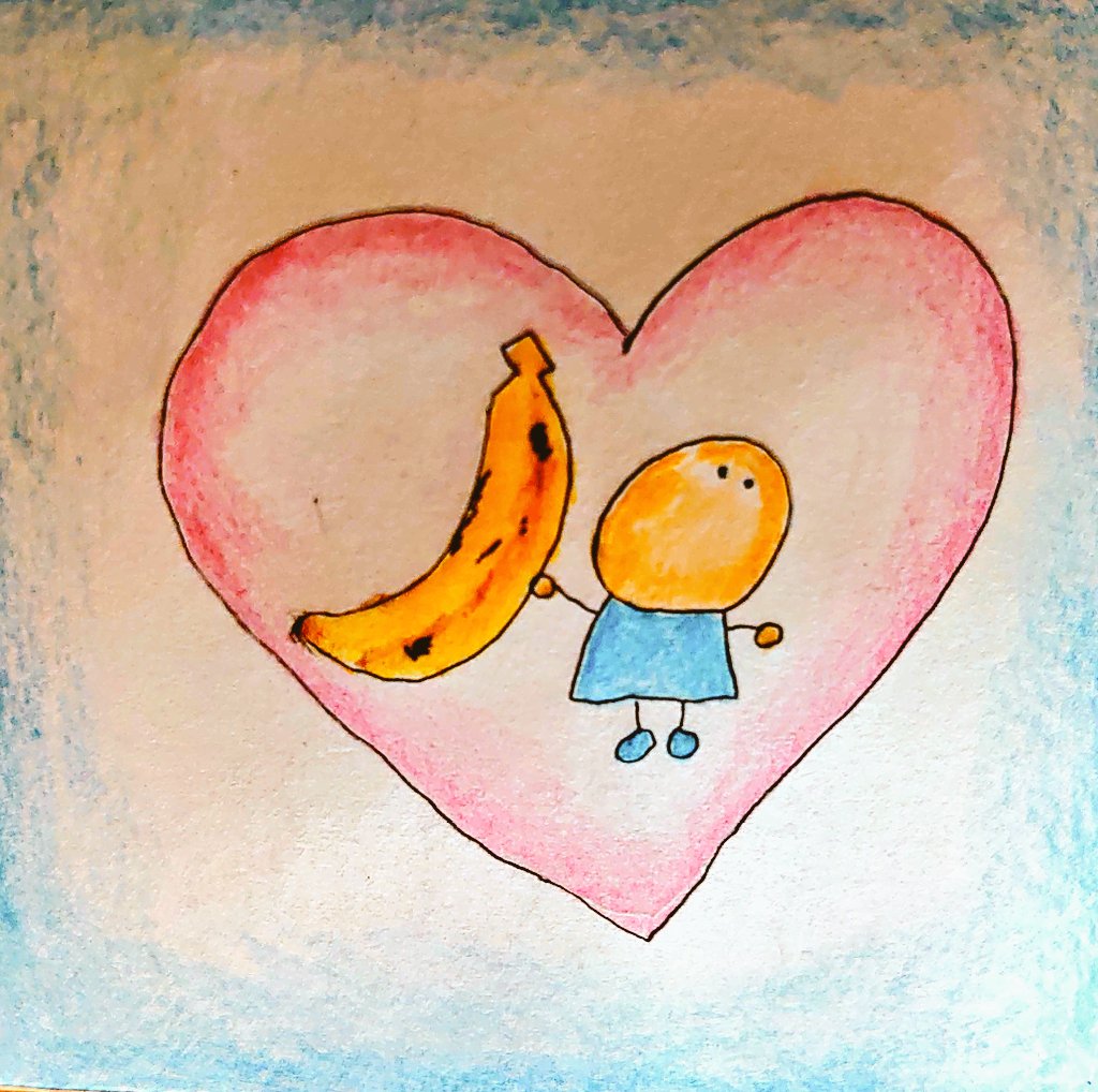 ばななが すきです… これくらいが たべごろだよ #おえかき #イラスト #絵本 #ようせいかわいいよ