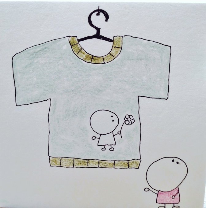 すてきなしゃつだね ままに、にあうよ おおきすぎない? #イラスト好きな人と繋がりたい #お絵描き好きな人と繋がりたい