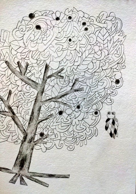 きのう やまにいってきました みのむしが いたので かいてます まだとちゅうです #お絵描き