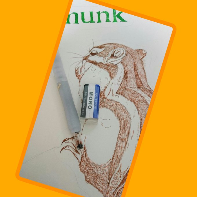 1 2 折角 #インク沼 のイベントでインク作ったのでそれを活用してお絵描き♪ #りすカフェ 用です。まだまだ描き途中…………(゜゜;) #りす #シマリス #ペン画 19/10/22 01:00