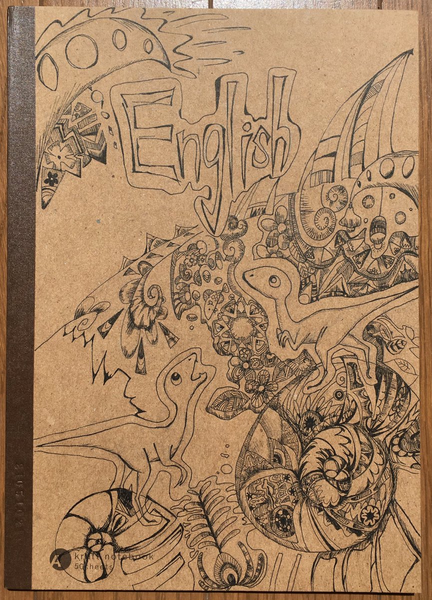 100均のノートに描いてみた #英語ノート #恐竜イラスト #ペン画