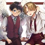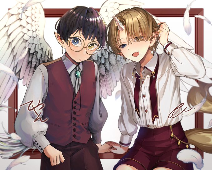 #イラスト #創作イラスト #絵柄が好みって人にフォローされたい #あなたの描くショタが見たい ペガサスとユニコーンのおショタを合作!!! 左のベリークレバー眼鏡ボーイは 夢てゃん @manamanaponpon が描いてくれたにょ YouTubeにメイキング動画もアップしたんで見てほしいかわいい(リプ欄)