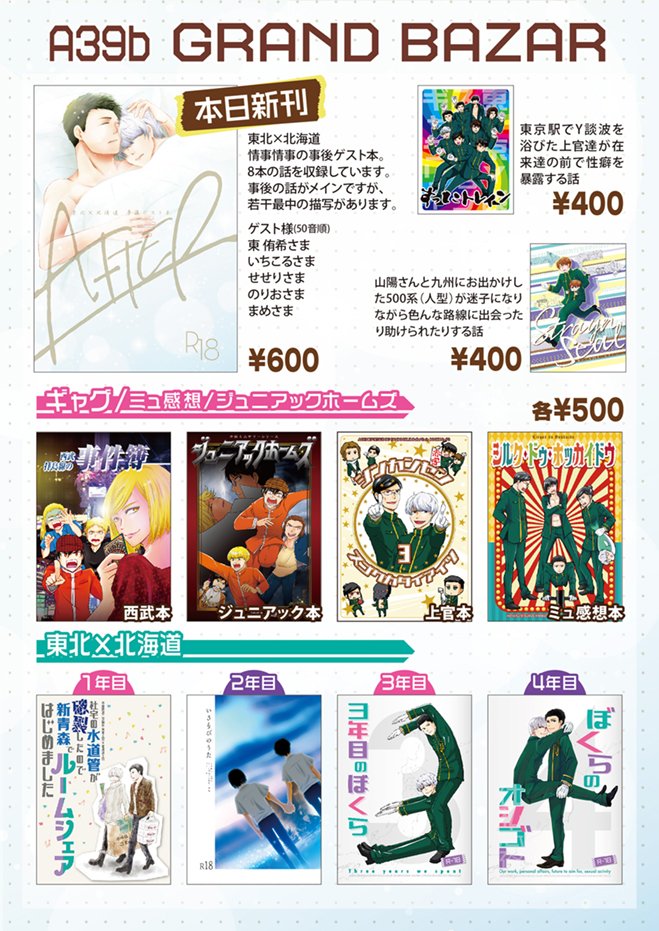 #20230503青の日報告知 ■ア23ab 新刊:ほぐどー両片思いゲスト本 【青函引力】 今回はたくさんの方々に両片思いをテーマに執筆頂きました(画像タップでサンプル開きます) 執筆者一覧/50音順 東侑希様 (@azuma133d) いちこる様 (@ichicorucoru) ケイコ様 (@keikothetokyo) 続く→