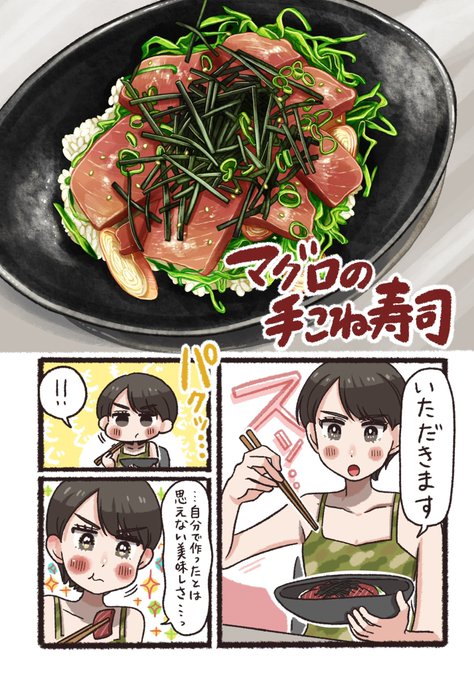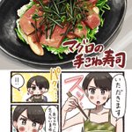 看護師 桃井ゆまのふんばりごはん日誌【25】 蒸しっとして暑い日は鰹や鮪などの赤身の魚をタレに漬け込んで、薬味をたっぷりのせた「手こね寿司」がオススメ❗️ 赤身魚に含まれるミオグロビンには鉄分が多く含まれ貧血予防にも🐟 冷やした出汁をかけてお茶漬けにしても💮 kango-roo.com/comic/9188/