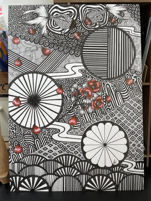 0 5 ペン画、ついに完成❣️ 制作時間110時間。 手がしんだ。 しかし、ペン画は達成感が凄まじいから1番好きかもしれない。 タイトル『流れゆく夜明けの冬』 #ペン画 #penpainting #アート #和風の絵画 22/02/18 14:57