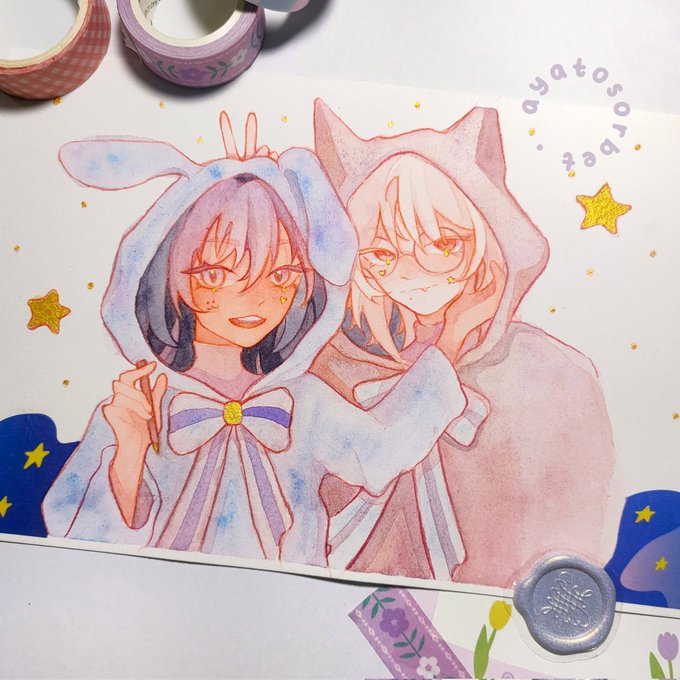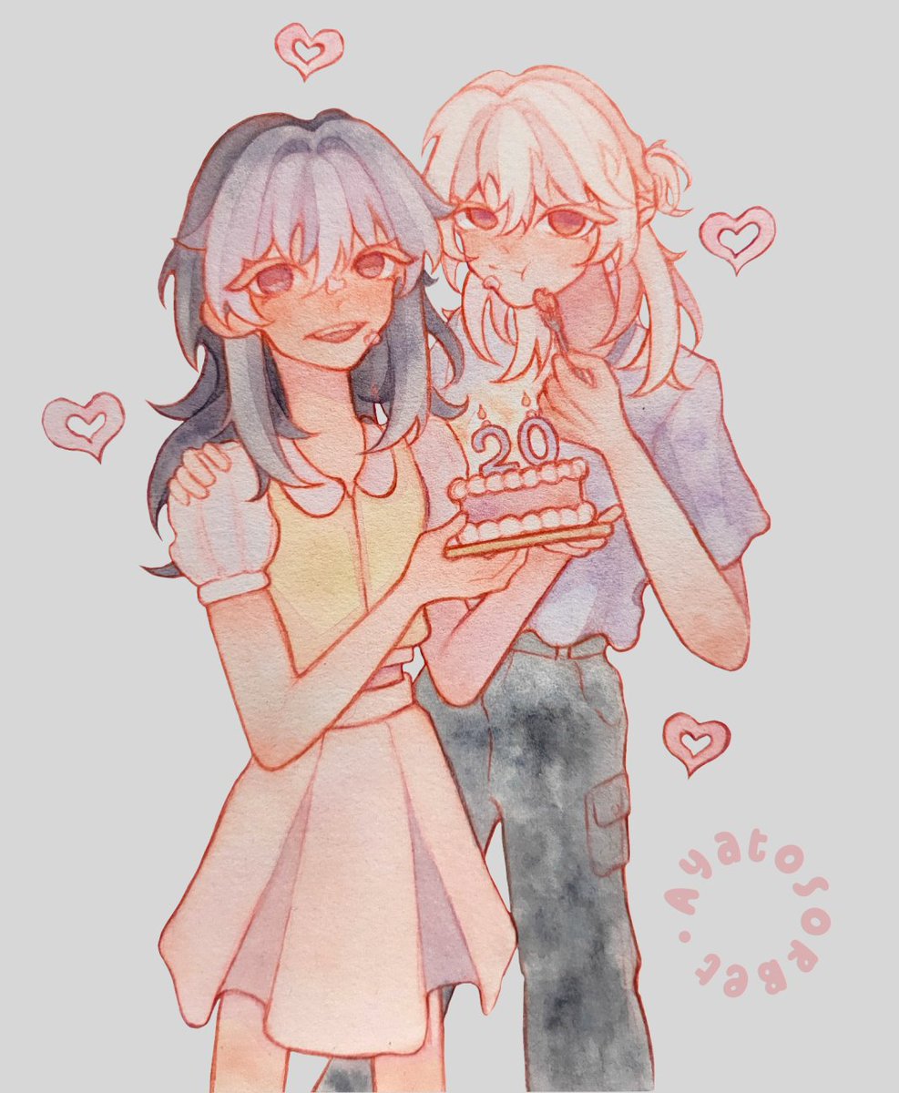 Yeppp today is my 20th birthday~ So here's Aya & Kiel that i drew as a gift for myself! 😽💞🎉 #artidn #ArtistOnTwitter