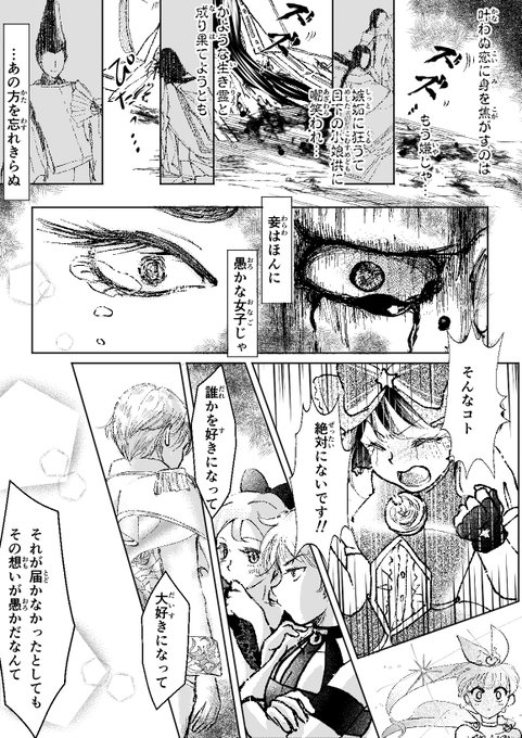 #ゴールデンウィークのお供に私の創作漫画読んでみませんか 美少女戦士とかホ〇ーMとか幽〇とかヴィジュアル系とか生足魅惑の人魚姫とか…あの頃のロマンスの輝きが大好きな人が、好きなように描いてみた変身ヒロイン漫画の、2話( ᐛ )