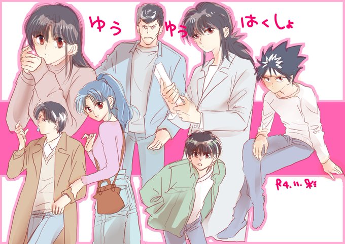 久しぶりにザザッと落書き。 幽白はいいぞ! (幽助、螢子、桑原、雪菜、蔵馬、麻耶、飛影、静流)
