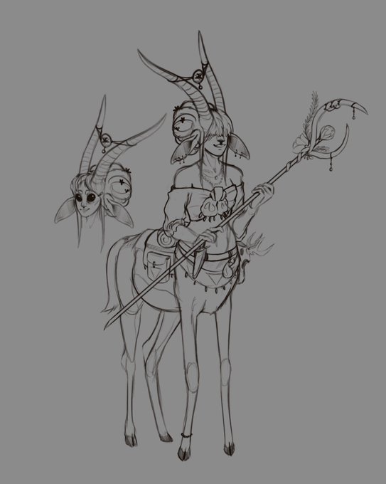once for the bright sky, twice for the pig sty, thrice for another day! my darling zenyvyr might have a bad habit of making clothes out of death things but she's sweet otherwise ✨ #dnd #dungeonsanddragons #ttrpg #centaur #dndoc #dndart #dndcharacter #oc #smallartist #character