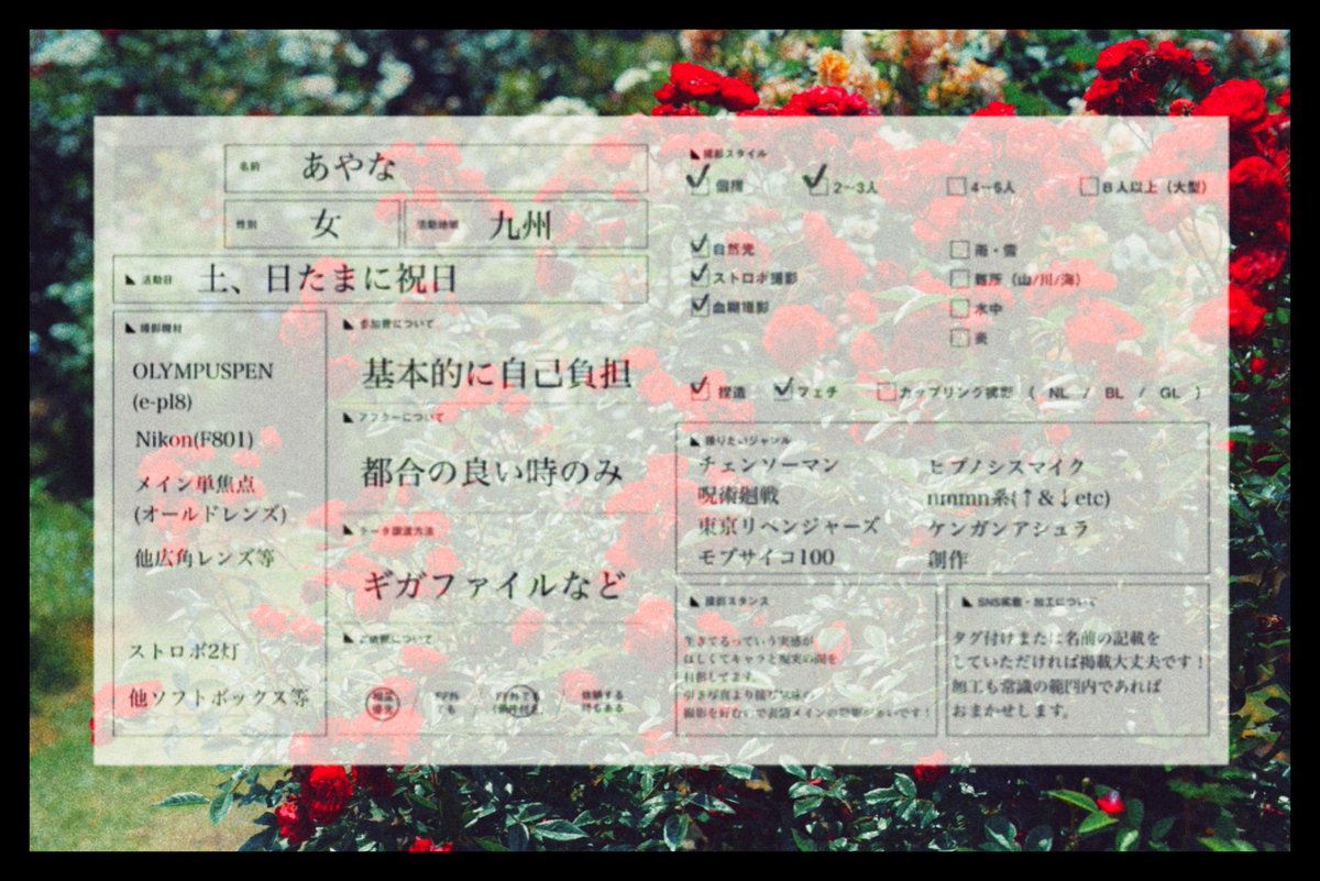 九州 / 成人済♨️ / カメラ まだ写真は少ないですが これから少しずつ撮影機会いただけたら嬉しいです🥺🙏🏻❤️🔥 RT中心にいいねのお迎えいきます👼🏻✨ #レイヤーさんと繋がりたい #東リベレイヤーさんと繋がりたい