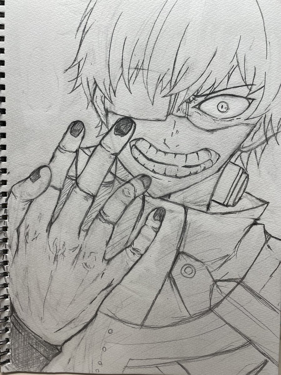 だいたいの鉛筆描き終わりました😭 原作の石田スイさんの絵ってホントに好きなんだけど、表情を表すのがめっちゃうまくてビビります。まじ尊敬✨ #イラスト #東京喰種 #イラスト好きさんと繋がりたい #金木研 #中学生絵描きさんと繋がりたい
