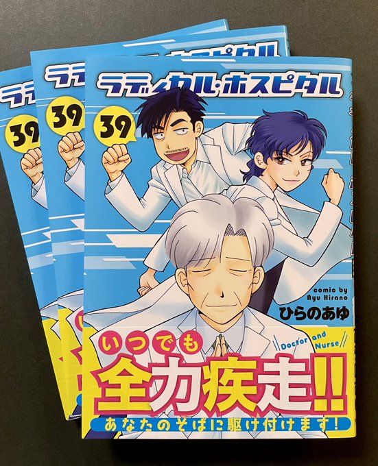 『ラディカル・ホスピタル』感謝の39巻、紙と電子で発売中です!書影より気持ち明るめのブルーで米澤親子+榊先生の涼しげ表紙。そろそろチラホラ暴走気味の病院日常4コマ、ぜひお手元に☺️ amzn.asia/d/0xWAEHt