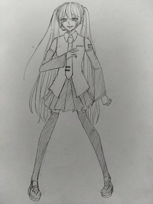 #初音ミク #イラスト 全身絵の練習に初音ミクちゃんを描いてみました!✨手とか苦手だけど結構上手くかけたので良かったらいいねしてくれると主は飛び跳ねて喜びます()