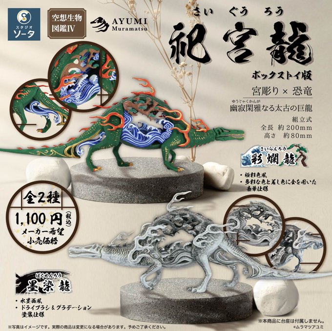 #7月になったのでフォロワーさんに自己紹介しようぜ 古い生命や文化、伝統などをテーマに立体作品を作っています。蒸し暑い毎日だけど今月もよろしく。次のガチャの情報もそろそろ公開になると思います🦕