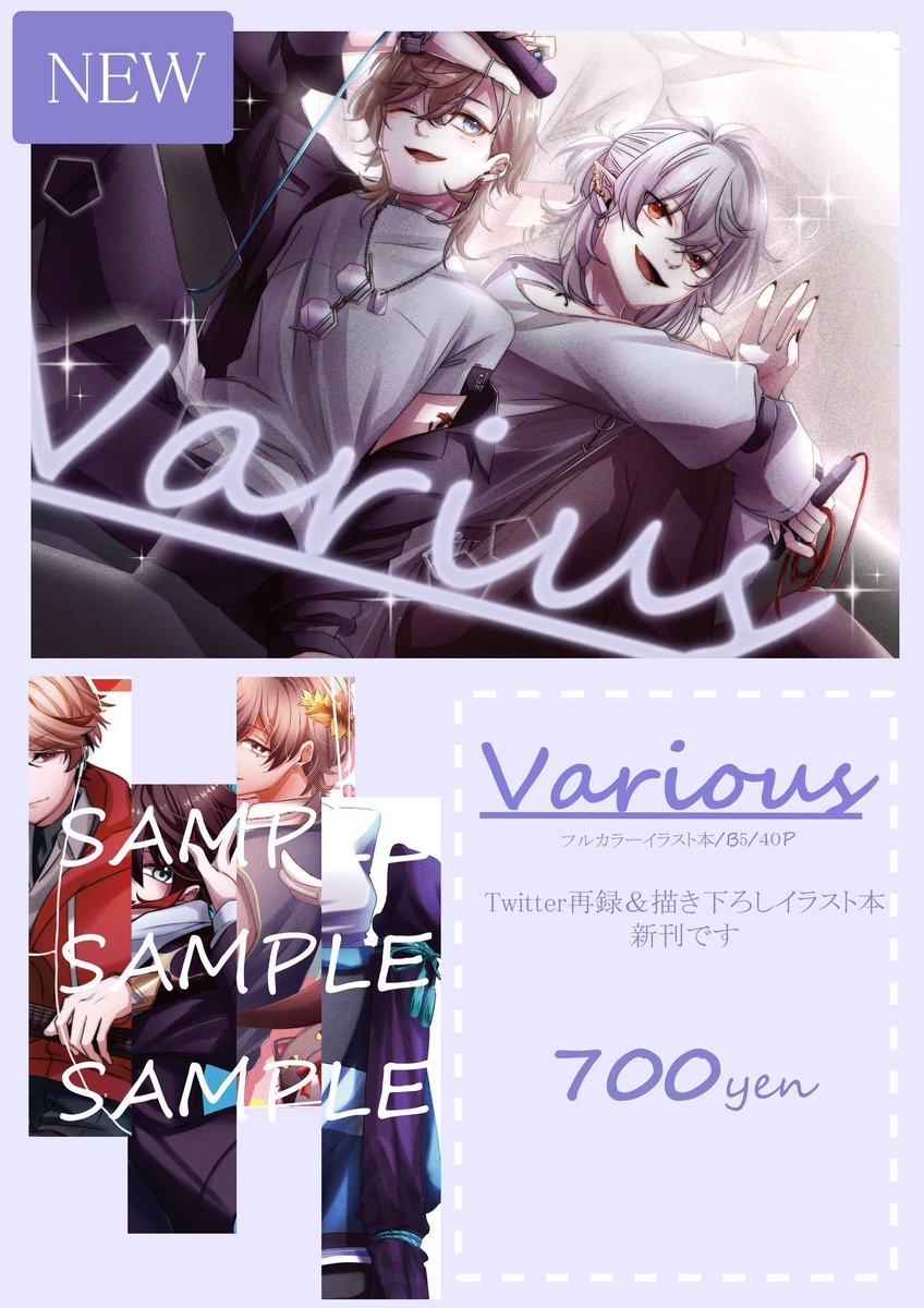 6 11 1枚目~3枚目・・・あゆむ頒布物 4枚目・・・ゆらりさん頒布物 あゆむのイラスト本は取り置き可能となっております。 後々取り置きフォームを置く予定ですが、不慣れなためフォームが完成しない可能性があります 良ければリプやDMで送っていただけると大変助かります。 #にじそうさく07 23/04/23 19:54