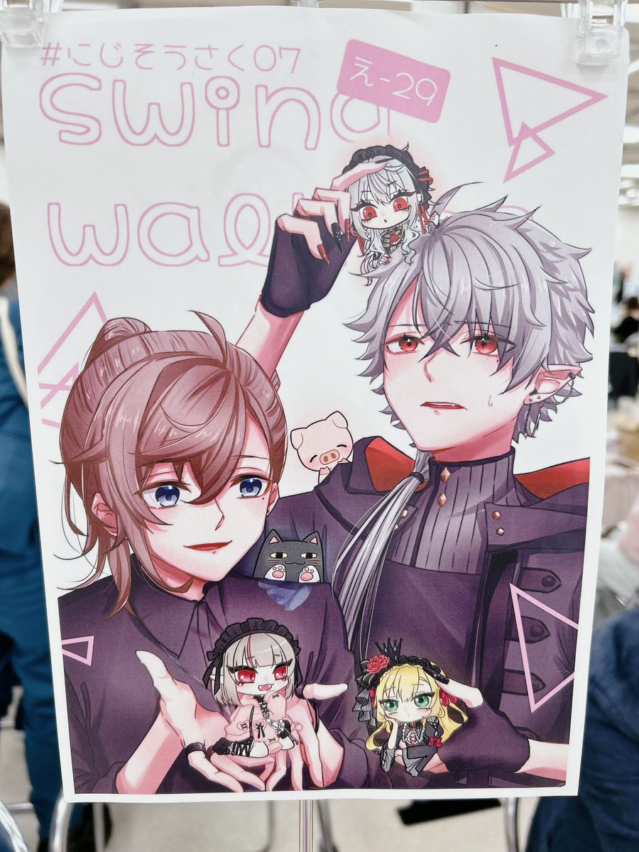 もう数日前ですって…早いですねぇ 「swing walking」【え-29】 ゆらりさんと合同でサークル参加します✨ 1枚目の画像を当日ポスターとして設置しております。 イラスト本の取り置きもまだやってます! 当日金銭はなるべくきっちりとだして頂けると大変有難いです🥺🙏 #にじそうさく07