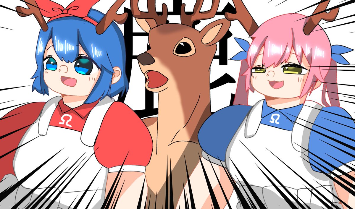 ごく普通の鹿とおめシスの絵です。 #おめシス #おめシスはいいぞ