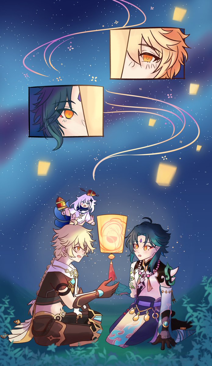 Happy Lantern Rite Firework sparklerIzakaya lanternSparkles Supposed to be for Sea of Lights but never got to finish it until now #GenshinImpactFanart #GenshinFanart #GenshinAether #GenshinXiao #LanternRite #絵