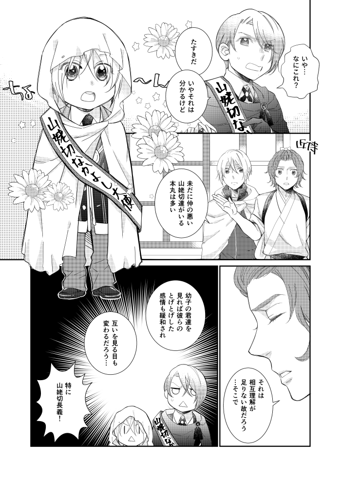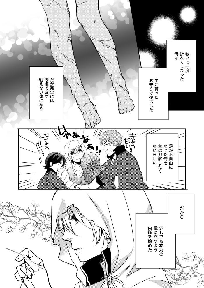 3/21HARUコミのちょぎくに新刊です。 現世遠征で迷子になったり本歌に可愛がられたりする国広です。迷○物語で迷子になってはわはわしていたんばちゃんに萌えて描きました。捏造小田原時代あり。B5/60P/700円(会場価格) 通販はとらさんにて。ecs.toranoana.jp/joshi/ec/item/… サンプル続きます(1/2)