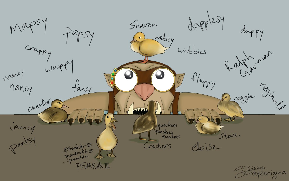 Buddy and his duck buddies!🦆 They're pretty! Though they do have a lot of names for some reason... #criticalrolefanart #criticalrole #narrativetelephone #buddytheogre
