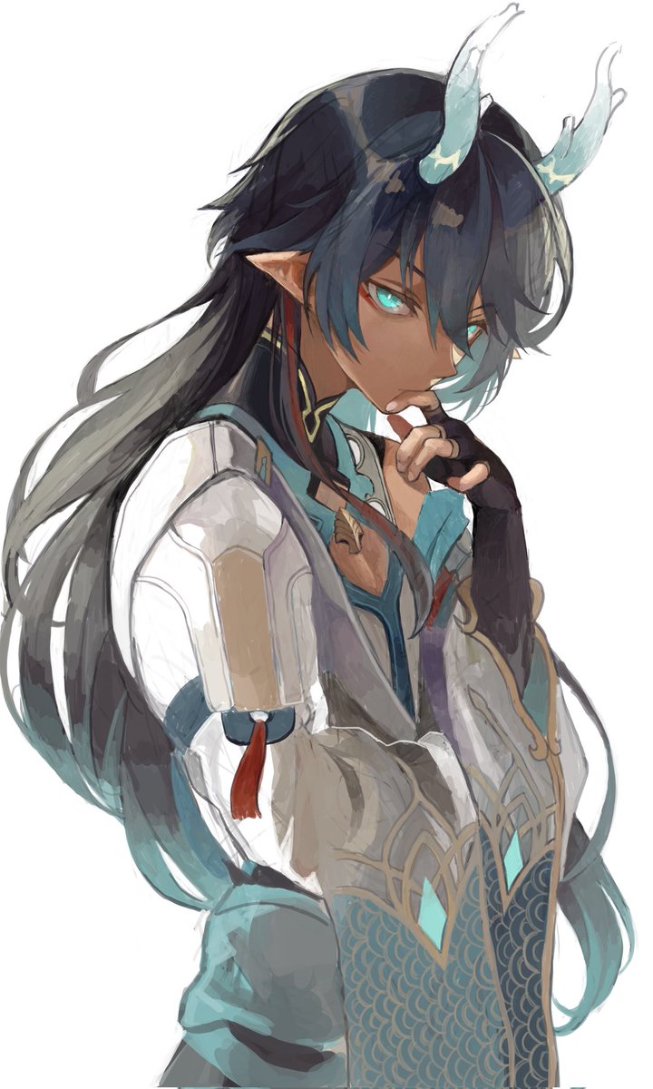 少し前に描いてて上げ忘れてた魈君の上げ直し。 腕の模様表示し忘れた。 #原神