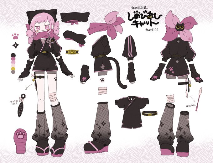 女性用衣装:しのびあしキャット よろしくお願いします🐈⬛ #プロセカ衣装デザイン #忍者