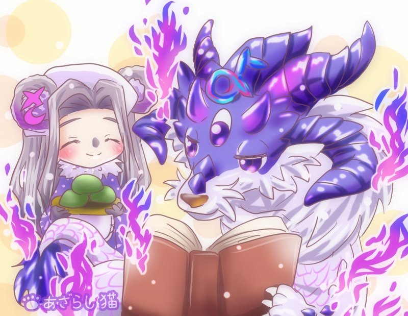 お題が龍神教ということで ヨルムンガリード様と ササ団子アラちゃん。 色々あって昨夜は 絵を描けなかったけど 超遅刻で急いでお絵描き! #コトダマン深夜のお絵かき60分一本勝負 #コトダマン #コトダマンイラスト #1日1絵