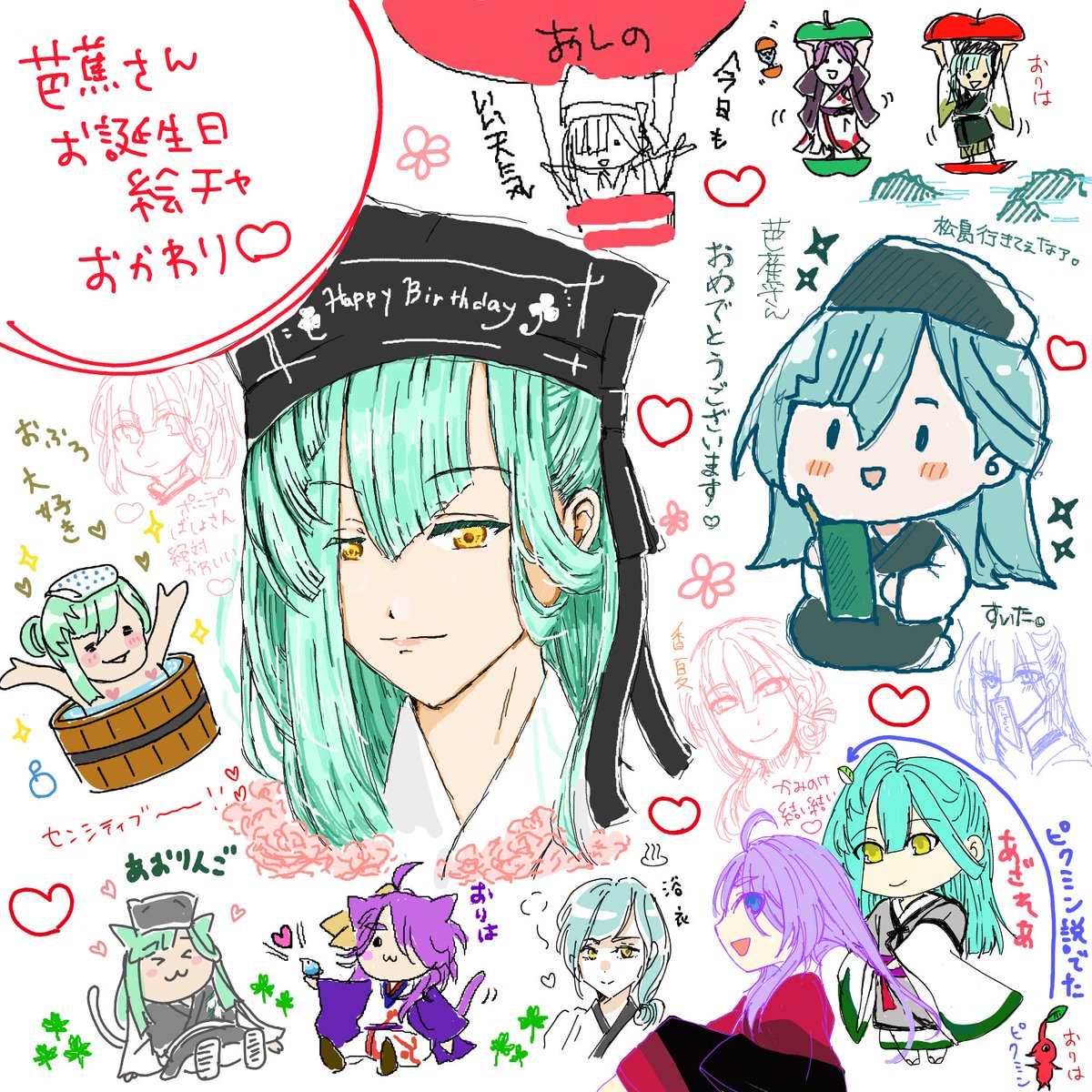 #2023剣刻松尾芭蕉誕生祭 芭蕉さんお誕生日祝い絵チャの寄せ書きおかわりです💕 参加者→あおりんごさん(@ringo_kgtk)、織葉さん(@oriha920)、おしのさん(@D82873)、あざれあ、すぃたさん(@dw_d0)、香夏さん(@kana_neko03)ヾ(*´∀`*)ノめちゃくちゃ楽しかった!ありがとうございました!