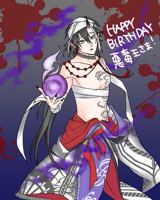 #剣が刻_ファンアート #悪毒王生誕祭2022 悪毒王さまお誕生日おめでとう~~!! お誕生日なのにめちゃくちゃ不穏なエフェクト入れてごめんなさい😂 ほぼ模写だし3Dモデル使ったけど一生懸命描いたよ!😇