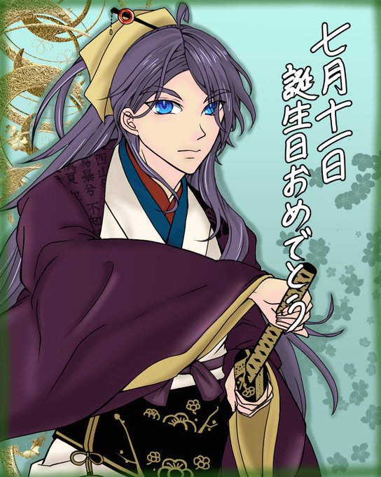 #2022剣刻徳川光国誕生祭 #剣が刻_ファンアート 光国様お誕生日おめでとう~! 3度目の誕生日も祝えてうれしい🥰 来年は新規のお祝いがあるといいね😊 相変わらずの構図模写だけど頑張って描いた💪 着物の柄はすまきさんの素材をお借りしてます😊