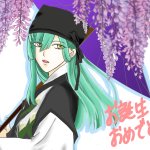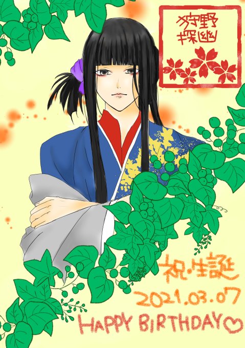 #2022剣刻松尾芭蕉誕生祭 #剣が刻_ファンアート ばしょさんお誕生日おめでとう! 3度目のお祝いもできて嬉しい~🥰来年もお祝いしたいな! イラストはいつものごとく構図模写…着物の柄はあやめさんの素材をお借りしました😊いつもありがとー💕
