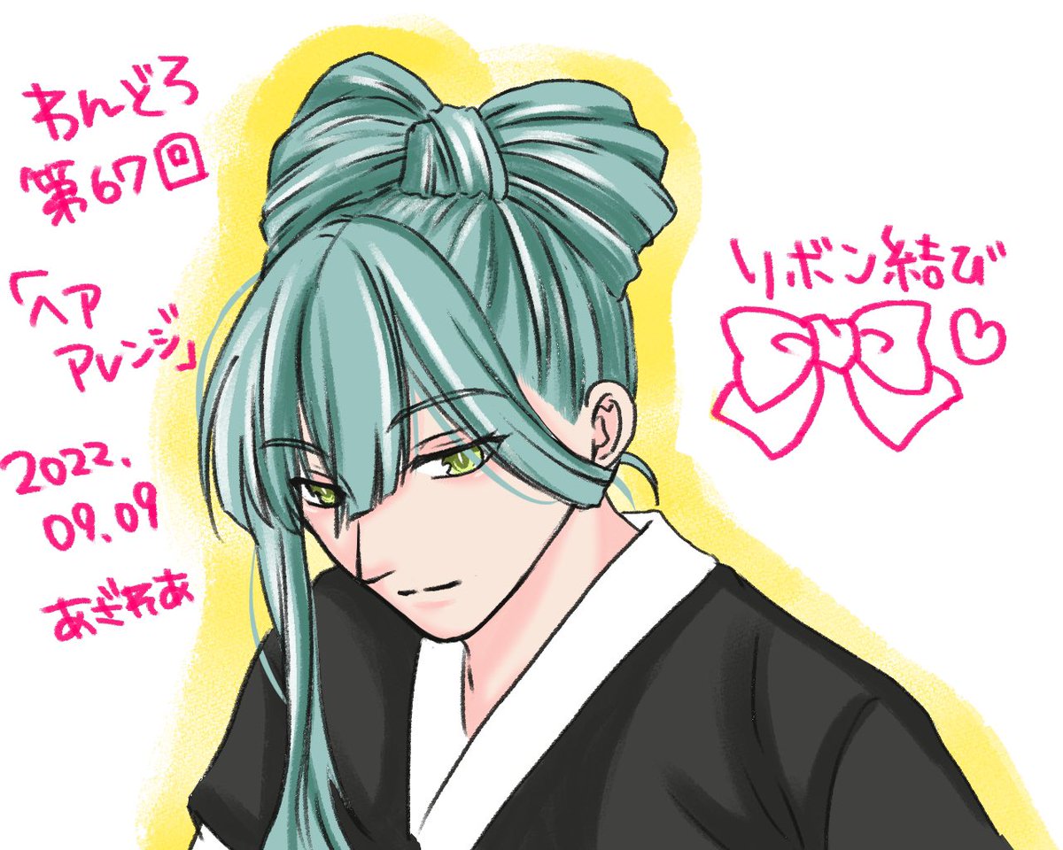 #剣が腐版深夜の真剣創作60分一本勝負 @kntkfu_1h お題「ヘアアレンジ」 ひまりちゃんか、もかちゃんあたりに遊ばれたばしょさん。なんでも似合うぞばしょさん♡ たぶんリボン結びの位置を間違えてるな、これ😇