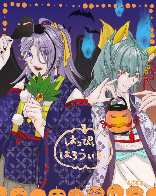 #2022剣刻ハロウィン #剣が刻_ファンアート タグお借りします🙏 和風ハロウィン目指してみた結果😇烏天狗みつくに様と、玉藻前ばしょさん🦊 相変わらず素敵素材を使っているにも関わらず、装飾のデザインセンスが微塵もないです…(´;ω;`) 毎回タグ使っていいか悩んでしまう…😂