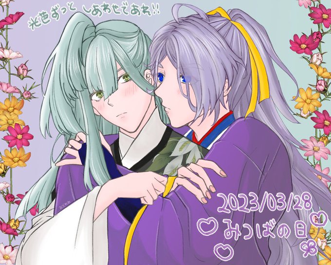 #2023剣刻松尾芭蕉誕生祭 #剣が刻_ファンアート ✨🎊芭蕉さんお誕生日おめでとう🎊✨ 今年もお祝いできる喜び💕 来年もお祝いできると信じてる! 例年通り光国様とセット感出してます🙌 ※構図はトレス素材模写