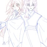 #剣が腐版深夜の真剣創作60分一本勝負 @kntkfu_1h お題「守る」※光芭 1時間間に合いませんでした😇1時間で線画まで。 ば「光国様、ここは私が…」 み「そなたは虫が苦手だろう(笑)」