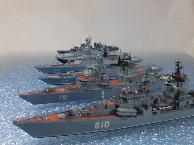 #今年作ったプラモ晒そうぜ 956-A型艦隊水雷艇ナストーイチヴイ 21631型小型ミサイル艦ヴェリキイ・ウスチュグ 1164型ミサイル巡洋艦モスクワ 以上3隻でした。 うわっ・・・私の完成品、少なすぎ・・・?