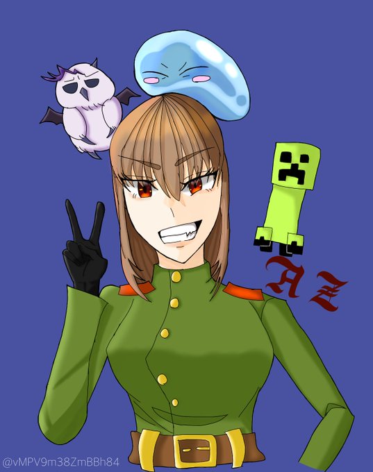 新しいアイコンイラストです! 好きなアニメと実況者さんを彷彿とさせるものを周りに描きました! 「魔入りました!入間くん」からモフエゴ、「転スラ」からリムル、「wrwrd!」のzmさんが好きなのでクリーパーです! #新しいアイコン写真 #イラスト