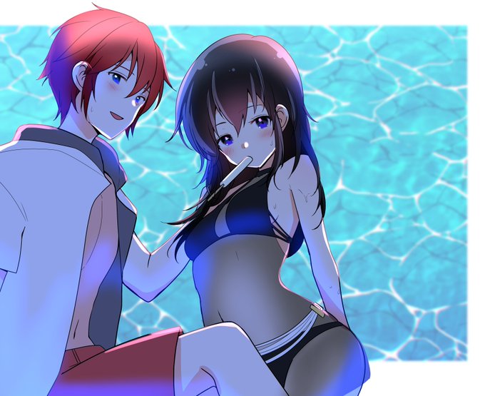 初参加で遅刻…!失礼いたします! ひさびさのワンドロで手間取ってしまいました~サモンナイト3から!海に関するテーマということで水着レックス先生とアズリアさん リプ欄にひとりごと @SN60min #SN版60分お絵描き一本勝負